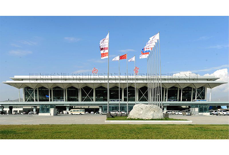 西寧曹家堡機(jī)場(chǎng)位于海東市互助區(qū),航站樓距西寧市區(qū)30公里。本期航站樓設(shè)計(jì)目標(biāo)為2020年年旅客吞吐量400萬(wàn)人次,其中國(guó)際旅客年吞吐量3萬(wàn)人次,國(guó)內(nèi)旅客吞吐量397萬(wàn)人次。本期航站樓呈“工”字形布局,為指廊式結(jié)構(gòu),指廊端放大為集中候機(jī)區(qū),設(shè)10個(gè)近機(jī)位(8C4D)。高峰小時(shí)旅客吞吐量1855人,其中國(guó)內(nèi)部分為1699人,國(guó)際部分為156人,高峰小時(shí)進(jìn)出港旅客比例均為55%,人數(shù)均為935人。旅客中轉(zhuǎn)率為50%,旅客中轉(zhuǎn)人數(shù)85人。新航站樓總建筑面積43950.0平米,占地面積21654.0平米,地上二層,地下一層,建筑高度30.4,米,結(jié)構(gòu)形式為框架、鋼結(jié)構(gòu),設(shè)計(jì)使用年限50年,抗震設(shè)防烈度7度。