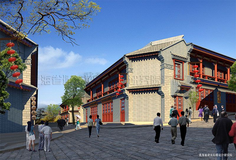 湟源天橋商業(yè)步行街用地位于湟源縣城。北臨丹葛爾古城,南臨東大街場,西臨北大街,東臨西城壕,場地東西寬89.6米~48.6米,南北長約為180米,用地占地面積14476平方米。該用地地塊略呈梯形,地勢北高南低,相對高差13.3米,東高西低,相對高差:1.2-2.2米。區(qū)內(nèi)建筑分(A-G區(qū))八個商業(yè)區(qū),由二層商鋪建筑構(gòu)成,局部三層,建筑布置自由靈活,組團明確,基本保證良好的朝向,滿足消防間距要求。建筑立面風格以甘青民居明清古建風格為主,全力營造仿古建筑商業(yè)步行街,采用青磚面層,小青瓦屋面,硬山墻元素,步行街總建筑面積19308平方米,占地面積14476平米。地上二層,局部三層,建筑高度14.0米,結(jié)構(gòu)形式為全框架結(jié)構(gòu),設(shè)計使用年限50年,抗震設(shè)防烈度7度。